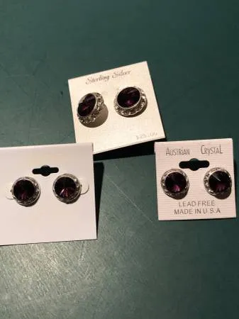 Have an assortment of very pretty earrings, all Austrian Crystal listed individually with prices below. Recently retired dancers, no longer need these. In absolutely perfect condition, all for pierced ears, no damage to any of these pieces. Live near Arapahoe Rd. and Parker Rd. Cash only. 720-470-9911 Dance number card holder -- $10 Crystal earrings 3 pairs dark plum purple 2 smaller size, 1 larger, 2 pair of clear crystal-- $5 per pair Dark blue earrings in the shape of hearts, - $...