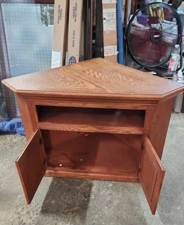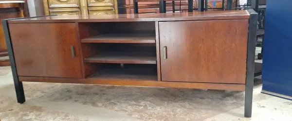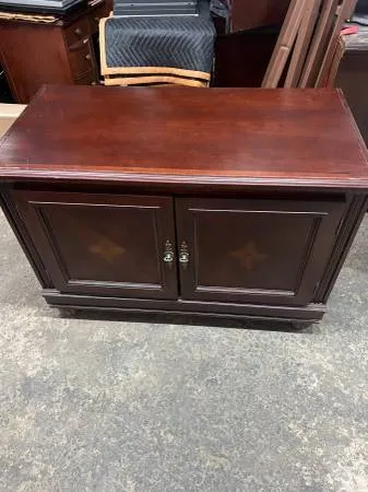I am pleased to offer this dark brown wooden TV stand cabinet. It has 2 shelves for storage. It does have some scuff marks on it but still in good shape. I am asking $99 OBO!!!!!! Taxes and Fees may apply for Pickup or Delivery. Please feel free to call or text Danny at 704-832-4110 with any questions or to schedule a time to pick up. Thank You! Items SKU: 165-0225-099 Measurements: Tv stand cabinet Length: 43.5 Width: 22 H 8: 30 Condition: good...