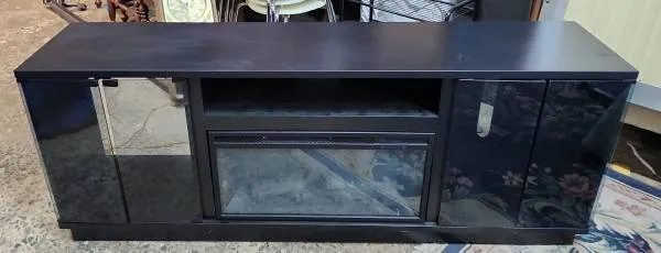 I am pleased to offer this Stylish Black TV Console with a Fireplace insert. It has a shelf for open storage above the insert. And doors on both sides that open up with 1 adjustable shelf in each. His has been tested and works you can see in the pictures above. I am asking $1750 BO!!!!!! Taxes and Fees may apply for Pickup or Delivery. Please feel free to call or text Danny at 704-832-4110 with any questions or to schedule a time to pick up. Thank You! Items SKU: 103-0825-175 ...