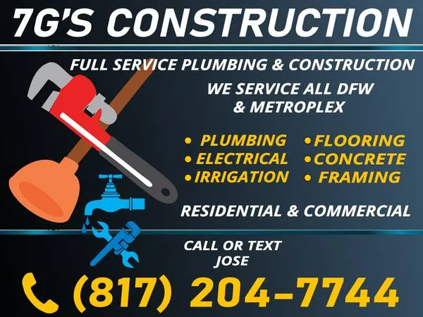 ✅ Full Service Plumbing & Construction ✅ Residential & Commercial ✅ Call or TextJose 817-204-7744 ✅ Free Estimates & phone Quotes ✅ References Available upon Request ✅ Over 15 years’ Experience ✅ We service the Entire DFW Metroplex ✅ We do Small Jobs & Big Jobs Call or TextJose 817-204-7744 • Plumbing Repairs • Faucets and Fixture Repair • Pipe Inspection • Garbage Disposals • Garbage Disposal Repair • Garbage Disposal Replacement • Water Heater Repair • Tankless Water Heater Installation • Toilet Repair • Toilet Installation • Toilet Replacement • Water Softener Installation • Water Heater Installs • Hot Water Heater Repair • Water Meters • Sewer Lines • Sink Unclogged • Shower Repair • Tub Replacement • Slab Leak Repair • Shut Off and Spickets • Gas Lines • Repairs • Installs • Non-Invasive Sewer Cleaning • Video Sewer Inspection • Hydro-Jetting Services • Septic Pumping • Sewer and Drain Cleaning • And Much More! We Specialize in the flooring: • Plumbing • Flooring • Electrical • Concrete • Irrigation • Framing 7 G’s Construction Residential & Commercial Call or TextJose 817-204-7744 Call or TextJose 817-204-7744 Call or TextJose 817-204-7744 Call or TextJose 817-204-7744 Call or TextJose 817-204-7744 _____________________________________________________________________________________________________________________________________________________________________________________________________________________________________________________________________________________________________________________________________________________________________________________________________________________________________________________________________________________________________ ___________________________________________________________________________________________________________________________________________________________________________________________________________________________________________________________________________________________________ _____________________________________________________________________________________________________________________________________________________________________________________________________________________________________________________________________________________________________________________________________________________________________________________________________________________________________________________________________________________________________ ___________________________________________________________________________________________________________________________________________________________________________________________________________________________________________________________________________________________________ _____________________________________________________________________________________________________________________________________________________________________________________________________________________________________________________________________________________________________________________________________________________________________________________________________________________________________________________________________________________________________ ___________________________________________________________________________________________________________________________________________________________________________________________________________________________________________________________________________________________________ _____________________________________________________________________________________________________________________________________________________________________________________________________________________________________________________________________________________________________________________________________________________________________________________________________________________________________________________________________________________________________ ___________________________________________________________________________________________________________________________________________________________________________________________________________________________________________________________________________________________________ _____________________________________________________________________________________________________________________________________________________________________________________________________________________________________________________________________________________________________________________________________________________________________________________________________________________________________________________________________________________________________ ___________________________________________________________________________________________________________________________________________________________________________________________________________________________________________________________________________________________________ _____________________________________________________________________________________________________________________________________________________________________________________________________________________________________________________________________________________________________________________________________________________________________________________________________________________________________________________________________________________________________ ___________________________________________________________________________________________________________________________________________________________________________________________________________________________________________________________________________________________________ ________________