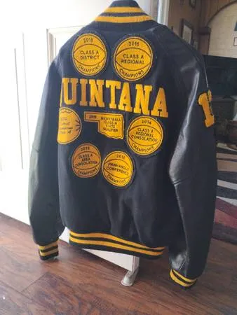 For sale used in good condition Real Leather Arms Mens Leader BaseBall Jacket size L Base Ball Only $35 No stairs easy pick up From a clean smoke/pet free home. Cell phone number: 720-377-5682 Thanks for reading