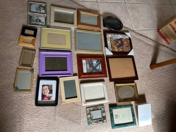 21 pieces. Variety sizes and shapes picture frames, some set on table and others hang to display family portraits. Mostly are new. Call: 619-569-9995.