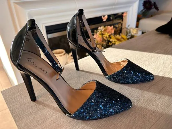 Size 9. Brand new. Navy blue color sparkly heels available. In perfect new condition. Call: 619-569-9995.