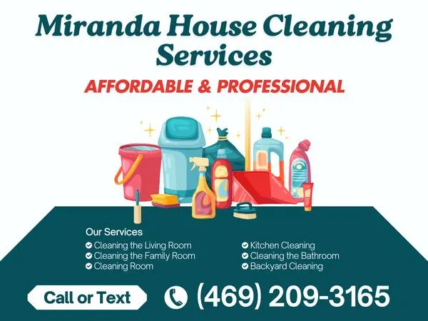Miranda House Cleaning Affordable & Professional Call📱 or Text💬 469-209-3165 ⭐ We clean Homes & Offices ⭐ We Clean 7 days a week ⭐ Fast Same day Service ⭐Basic Cleaning ⭐Detailed Standard Cleaning ⭐Deep Cleaning ⭐Move In | Move Out ⭐AirBnB Cleaning ⭐Organization ⭐House Keeping ⭐Window Cleaning ⭐Luxury Cleaning ⭐Laundry Miranda House Cleaning Affordable & Professional Call📱 or Text💬 469-209-3165 Call📱 or Text💬 469-209-3165 Call📱 or Text💬 469-209-3165 BATHROOMS: •Sink thoroughly cleaned, disinfected and rinsed •Tub and/or shower tiles thoroughly cleaned, disinfected and rinsed •Chrome fixtures cleaned and shined •Toilets disinfected inside and out, including base and behind •Vanity top cleanedmore time may be required to remove and replace items on top •Towels changedif left out •Mirrors cleaned •Windowsills wiped down •Trash emptied •Baseboards dusted or wiped •Vacuum and/or wash floor •Fingerprints removed from all woodwork, doorframes and switch plates KITCHEN: •Countertops and backsplash cleanedall items removed and replaced •Cabinet fronts washed or dusted •Sinks scrubbed and disinfected •Floor vacuumed or washed •Exterior of appliancesoven, microwave, refrigerator, dishwasher, stovetopcleaned •Small appliances wiped •Windowsills cleaned •Baseboards dusted or wiped •Fingerprints removed from all woodwork, doorframes and switch plates •Trash emptied •Dishes washedplease set up procedure with your local office •Wash or dust table and chairs BEDROOMS: •Carpets vacuumed •Beds made •Linens changedif left out •All areas dusted - on top, on front and underneathall items removed and replaced - more time may be required if there are lots of knick knacks •Picture frames dusted •Mirrors cleaned •Windowsills cleaned •Fingerprints washed from all woodwork, doorframes and switch plates •Vacuum under bedif accessible •Trash emptied •Baseboards dusted •Lampshades wiped down or dusted •Light, general straightening completed OTHER AREAS: •All areas dusted - on top, on front and underneathall items removed and replaced - more time may be required if there are lots of knick knacks •Upholstered furniture vacuumed •Cushions and pillows fluffed and straightened •Hardwood or tile floors damp-mopped •Carpeted floors vacuumed •Baseboards dusted and cobwebs removed •Windowsills wiped down •Fingerprints wiped from all woodwork, doorframes and switch plates •Glass tables cleaned •Picture frames dusted •Lamp shades wiped down or dusted •Light, general straightening completed ___________________________________________________________________________________________________________________________________________________________________________________________________ _________________________________________________________________________________________________________________________________________________________________________________________________ __________________________________________________________________________________________________________________________________________________________________________________________________ __________________________________________________________________________________________________________________________________________________________________________________________________ __________________________________________________________________________________________________________________________________________________________________________________________________ __________________________________________________________________________________________________________________________________________________________________________________________________ __________________________________________________________________________________________________________________________________________________________________________________________________ __________________________________________________________________________________________________________________________________________________________________________________________________ __________________________________________________________________________________________________________________________________________________________________________________________________ __________________________________________________________________________________________________________________________________________________________________________________________________ __________________________________________________________________________________________________________________________________________________________________________________________________ __________________________________________________________________________________________________________________________________________________________________________________________________ __________________________________________________________________________________________________________________________________________________________________________________________________ __________________________________________________________________________________________________________________________________________________________________________________________________ __________________________________________________________________________________________________________________________________________________________________________________________________ __________________________________________________________________________________________________________________________________________________________________________________________________ __________________________________________________________________________________________________________________________________________________________________________________________________ ____________________________________________