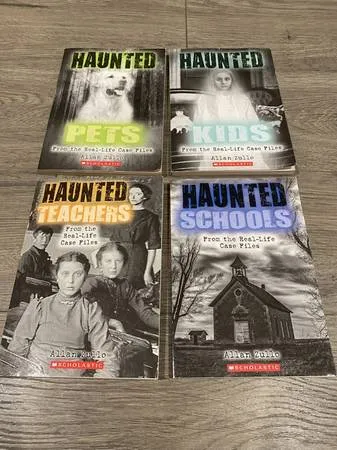 TRUE GHOST STORIES Haunted Teachers, Pets, Kids, Schools by Allan Zullo True Ghost Stories Paperback by Allan ZulloAuthor 4 Paperback Books 4 Books Total Reading Age 4 th - 6 th grade Check out all the other books I have for sale Pick up 192 nd & Harrison area Text 402-889-5046