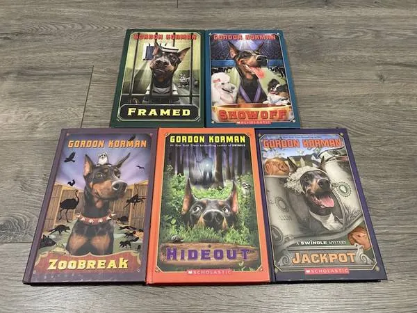 THE SWINDLE SERIES by Gordon Korman 5 Books SHOWOFF, JACKPOT, HIDEOUT, ZOOBREAK, FRAMED ~ EXCELLENT! 5 Hardcover Books Total Pick up 192 nd & Harrison area Text 402-889-5046