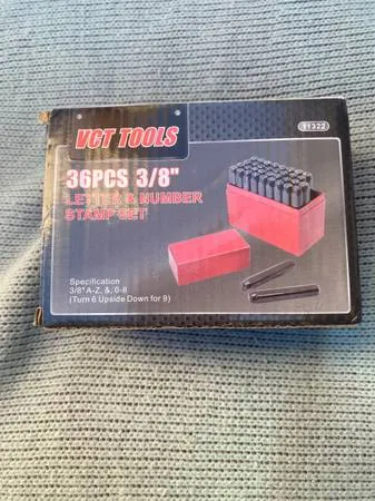 NEW NEVER OPENED STILL IN THE BOX VCT TOOLS 36 PCS 3/8 LETTER & NUMBER STAMP SET MUST SEE SEE ALL THE PICTURES CONTACT TOM AT 141-526-0117