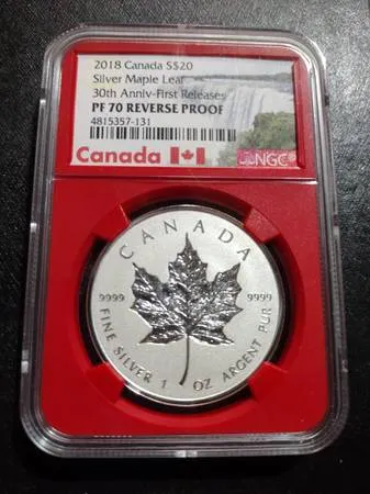 Beautiful coin, new in the original mint slab case and includes the certificate of authenticity. 2018 Canada Silver $20 Maple Leaf 30 th Anniversary - first releases PF 70 Reverse Proof silver coin - 1 oz fine silver. Serious inquiries only please, selling for $175, price is firm. Located In Aurora for pick up, contact Joe at 630-806-3310.