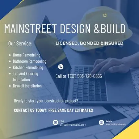 Mainstreet Design and Build 15 years of eperience Please call or text for a free estimate 503-720-0555 🔸House renovation 🔸Kitchen remodeling 🔸Bathroom remodeling 🔸Basement remodeling 🔸Tile and Flooring Installation 🔸Tenant Improvements 🔸General contracting. CCB 238106 Key Words: Hot Tub Repairs, Hot tub Repair, Spa Repairs, Spa Repair, Hot Springs Spas, Hot Springs Spa Repair, Hot Springs Spa Repairs, Sundance Spa Repairs, Sundance Spa Repair, Sundance Hot Tubs, Sundance Hot Tub, Balboa, Hydro Quip, Gecko, Heater Repair, Leak Repair, Control Problem, Pump Repair, Pump Leak, Home Depot Hot Tub, Your Back Yard Spa, Your backyard Spa, Costco Hot Tub, Motor Repair, Artesian Spas, Beachcomber, Blue Pacific Spa, Blue Ridge Spa, Cal Spa, Caldera Spa, California Cooperage Spa, Caribbean Spa.Catalina Spa, Clear Water Spa, Coleman Spa, Columbia Spa, Dimension 1 Spa, Discovery Spa, Dolphine Spa, Dream Maker Spa, Emerald Spa, Freedon Spa, Gatsby Spa, Hayward Pool Products, Heartland Spas, Infinity Spa, Jacuzzi Brothers, La Spas, Laguna Bay Hot Tub, Leisure Bay Spas, Lowes, Marquis Spas, Master Spas, Mountian Springs Spas, Northwest Spas, North West Spas, Phoenix Spas, Portable Spas, Santana Spas, Signature Spas, Softub, Sonoma Spas, South Pacific Spas, Sta-Rite, Sta Rite, Sonoma Spas, Southwest Spas, Tigar Spas, Tiger River, Unicel, US Spa, Viking Spa, Warm Springs Spa, Watkins MFG, Watkins, White Springs, tile, tile installer, tile installers, tile setter, tile setters, tile contractor, tile contractors, granite, marble, slate, travertine, porcelain, ceramic, shower pan, showerpan, shower-pan, tub, tub surround, tub surrounds, showerpans, mud set, mud-set, Tile Key Words: remodeling contractor, floor remodeling contractor, hardwood, hardwood flooring installation, hardwood flooring, bamboo, maple, red oak, natural oak, Brazilian cherry, install wood on steps, base molding, remodeling, floor remodeling, laminate installation, laminate, laminate remodeling, cheap installation, cheap flooring installation, install laminate on steps, Carpentry, Licensed, Contractor, Insured, Bonded, Drywall, Sheetrock, Mudding, Taping, Texture, Patch, Framing, Deck, Trellis, Remodel, Trim, Moulding, Molding, Finish, Professional, Doors, Windows, Casing, Liner, Interior door package, molding, moulding, trim, baseboards, casing, liner, carpenter, quality, custom framing, framing, framer, contractor, Washington, Vancouver, salmon creek, battleground, hazel dell, la center, Longview, Washougal, Orchards, Camas, Ridgefield, bonded, insured, contractor, finish work, maintenance, repairs, rebuild, cabinet installation, kitchen remodels, bathroom remodels, makeovers, renovations, restorations, caulk, sand, refinish, restore, replace, flooring, laminate flooring, pergo, floating floor, realtors, investors, affordable, clark county, basement remodelsfast flooring installation, house remodeling, kitchen remodeling, hallway remodeling, living room remodeling, affordable remodeling, estimates, free estimates, fast estimates, best prices flooring installation, cheap prices flooring installation, quality flooring installation, cheap price flooring product, carpet. handyman, handy man, handy, KEY WORDS: Fence - Deck - railings - ramps - construction - general doors, dovetail, solid wood furniture, hardwood, FSC wood, kitchen refinishing, commercial, kitchen island, back-splash, new counter-tops, st 1 counters, custom furniture maker, glass panel doors, soft closing drawers, exotic wood, euro style cabinets, euro hinges, concealed hinges, face frame cabinets, raised panel cabinets, maple, oak, hickory, alder, cherry, tile, tile installer, tile installation, installers, setter, setters, contractor, contractors, floor, floors, flooring, bathroom, bathrooms, kitchen, kitchens, counters, tile, tile setter, tile setters, tile installer, tile installers, tile contractor, tile contractors, shower, showers, shower pan, shower-pans, porcelain, ceramic, marble, travertine, granite, bathroom, batrooms, kitchen, kitchens, bath tub, bathtub, repairs, repair, handyman, repairs, clean, cleaning, repairing, restore, restoration, upgrade, fix, remodel, remodeling, tear out, caulk, caulking, seal, sealing, shower pan, showerpan, hardy backer, floor, floors, flooring, tile, Tile, Setter, Tile Setter, Tile Setters, Tile Installers tile, tile installer, tile installers, tile setter, tile setters, tile contractor, tile contractors, granite, marble, slate, travertine, porcelain, ceramic, shower pan, showerpan, shower-pan, tub, tub surround, tub surrounds, showerpans, mud set, mud-set, Tile tile, installer, installers, setter, setters, contractor, contractors, floor, floors, flooring, bathroom, bathrooms, kitchen, kitchens, counters, tile, installer, installers, setter, setters, contractor, contractors, floor, floors, flooring, bathroom, bathrooms, kitchen, kitchens, counters, tile, tile setter, tile setters, tile installer, tile installers, tile contractor, tile contractors, shower, showers, shower pan, shower-pans, porcelain, ceramic, marble, travertine, granite, bathroom, batrooms, kitchen, kitchens, bath tub, bathtub, repairs, repair, handyman, repairs, clean, cleaning, repairing, restore, restoration, upgrade, fix
