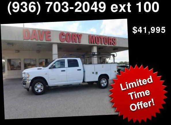 Dave Cory Motors address: 6445 I-45 North Fwy Houston TX, 77076 phone: 936-703-2049 ext 100 text: Text 100 to 936-703-2049 for more details : https://13904.dealerresources.net/s/60762050/2/23748432/100 contact: Our Sales Department 2021 RAM 2500 TRADESMAN CREW CAB READING SERVICE BODY WITH LADDER RACKS 6.7 L DIESEL Notes from the Dealer Visit Us at www.davecorymotors.com Vehicle Info Stock #: S 19379 VIN: 3 C 6 UR 4 HL 1 MG 604663 Condition: Used Odometer: 112137 Drivetrain Engine: Intercooled Turbo Diesel I-66.7 L/408 Cylinders: 6 Fuel Type: Diesel Transmission: 8-Speed Automatic w/OD Transmission Type: Automatic Drivetrain: RWD Body & Interior Exterior Color: White OEM Color Name: Bright White Clearco Interior Color: Gray Doors: 4 Description 2021 Ram 2500 HD Tradesman Crew Cab Reading Service Body with Ladder Racks 6.7 L Cummins Turbo Diesel Automatic Options Rear Wheel Drive., Tow Hitch., Power Steering., ABS., 4-Wheel Disc Brakes., Brake Assist., Steel Wheels., Conventional Spare Tire., Power Mirrors., Heated Mirrors., Intermittent Wipers., Privacy Glass., Power Door Locks., Daytime Running Lights., Automatic Headlights., AM/FM Stereo., Bluetooth Connection., MP 3 Capability., Auxiliary Audio Input., Adjustable Steering Wheel., Power Windows., Rear Bench Seat., Keyless Start., Cruise Control., A/C., Vinyl Seats., Split Bench Seat., Passenger Vanity Mirror., Bluetooth Connection., Power Door Locks., Power Windows., Split Bench Seat., Immobilizer., Traction Control., Stability Control., Traction Control., Front Side Air Bag., Tire Pressure Monitor., Driver Air Bag., Passenger Air Bag., Passenger Air Bag Sensor., Front Head Air Bag., Rear Head Air Bag., Child Safety Locks., Back-Up Camera., Variable Speed Intermittent Wipers., Dave Cory Motors address: 6445 I-45 North Fwy Houston TX, 77076 phone: 936-703-2049 ext 100 text: Text 100 to 936-703-2049 for more details : https://13904.dealerresources.net/s/60762050/2/23748432/100 contact: Our Sales Department