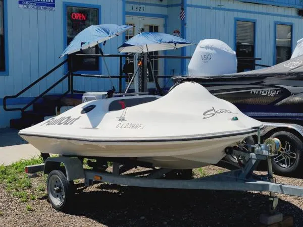 **PRICE REDUCED** RARE Skate 2 person boat with 30 hp Nissan motor. This small but quality built boat is only 9 long. It is lightw 8, efficient on gas, and is easy to launch. Has double shades, multi speaker stereo system and trailer. Please call John at 970-535-0761 if youd like to take a look or stop by. Have something to sell? Give us a call 970-535-0761 to discuss. We pay more! No purchase necessary. Sundance RV Marine Auto LLC 1621 Mountain Ave Berthoud, CO 80513 970-535-0761 Sundance RV Marine Auto LLC We are a small family business located at the corner of Hwy 287 and Hwy 56 in Berthoud, on the way to Carter lake. We provide quality RV and Marine services including sales, consignments, repairs, maintenance, and more. We are a Yamaha G 3 Boat / SunCatcher Pontoon dealer and authorized Yamaha service center. We have over 50 years of experience in the RV and Marine industry, and have an extensive knowledge on most aspects of RV and Marine repair and service. **We accept consignments and trades!** Please call John if youd like to take a look or stop by 970-535-0761. Closed Sunday.