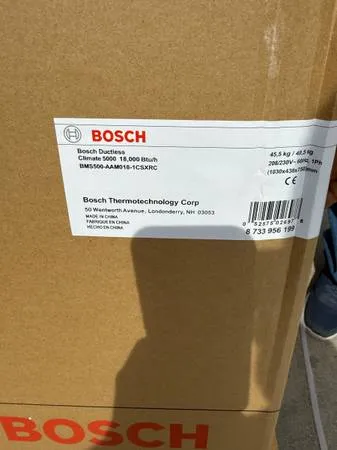 BRAND NEW 3 ton Bosch AC full set condenser and air handler BRAND NEW 3 ton Bosch AC full set condenser and air handler Retail $6500 plus tax 3 Ton Bosch 2.0 Heat Pump Inverter Condenser, model: BOVA-36 HDN 1-M 20 G 3 Ton Bosch 2.0 Air Handler, Model: BVA 36 WN 1 M 20 Calls or text 909-912-4072