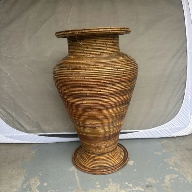 Inside Planter (container) not for outside use, can't use with plants that need to be watered. Works for artificial plants. It's a Decorative. 35" Tall, 17" Top, 20" Wide and 16" Base. No Holds. No Delivery. Cash Only.