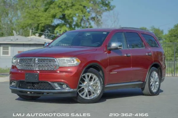 2014 DODGE DURANGO CITADEL Offered by: LMJ Auto Motors Sales 210-361-1932 — $11,999 Schedule an Appointment Today! We are READY TO MAKE A DEAL! 210-362-4166. Schedule an Appointment Today! We are READY TO MAKE A DEAL! 210-362-4166. Introducing the 2014 Dodge Durango Citadel, a powerful and luxurious SUV that will elevate your driving experience to new h 8 s. Equipped with a HEMI 5.7 L V 8 engine, this beast roars with 360 horsepower and 390 ft. lbs. of torque, giving you the ultimate combination of performance and strength. But the Durango Citadel is not just about power, it also offers a smooth and efficient 8-speed shiftable automatic transmission, making every ride a breeze. And with extra spacing, you and your passengers can enjoy a spacious and comfortable cabin, perfect for long drives or family adventures. Step inside and youll be greeted by premium leather seats, wood accents, and advanced technology features such as a touchscreen display, Bluetooth connectivity, and a rearview camera. The Durango Citadel also boasts a top-of-the-line sound system, making every trip a concert on wheels. Safety is always a top priority, and the Durango Citadel delivers with features like blind spot monitoring, rear cross-traffic alert, and adaptive cruise control. With this SUV, you can confidently take on any road and weather conditions. Dont miss out on the opportunity to own this 2014 Dodge Durango Citadel. With its impressive specifications and extra spacing, it is the ultimate combination of power, luxury, and comfort. Visit our dealership an LMJ Auto Motors Sales Year: 2014 Make: DODGE Model: DURANGO Series: CITADEL VIN: 1 C 4 SDHET 1 EC 360236 Stock #: 10462 Condition: Used Mileage: 129,379 Exterior: Red Interior: TAN Body: SUV Transmission: Automatic Engine: 5.7 L 8 Cyl. Drivetrain: fwd ⭐️⭐️ 🚘 🚘 ⭐️ LMJ Auto Motors Sales ⭐️ 🚘 🚘 ⭐️⭐️ 🔹🔹📲 ☎️️ CALL OR TEXT US 210-361-1932 📲 ☎️️🔹🔹 ⭐️⭐️Schedule an Appointment Today! ⭐️⭐️ ⭐️⭐️We are READY TO MAKE A DEAL! 210-362-4166. ⭐️⭐️ ✅ FAST AND EASY PURCHASE! ✅ TRADE-INS WELCOME! ✅ FRIENDLY NO PRESSURE STAFF! ✅ FREE CARFAX - REAL MILES ✅ COMMERCIAL VEHICLES AT GREAT PRICE ✅ CASH DEALS OR BRING YOUR OWN BANK ✅ NEED HELP FINANCING WE HAVE A LENDER FOR LOWER CREDIT SCORES EACH APPLICATION IS DIFFERENT 10-20 DOWN PAYMENT 550 AND UP CREDIT SCORES ✅ PROOF OF INCOME - DRIVER LICENSE OR ID 🔥🔥🔥 CHECK OUT OUR INVENTORY!🔥🔥🔥 https://www.carfax.com/Reviews-LMJ-Auto-Motors-Sales-San-Antonio-TX_AHLQABAHC 8 ⭐️⭐️ 📲 ☎️️ CALL OR TEXT 210-361-1932 📲 ☎️️ ⭐️⭐️ 2014 DODGE DURANGO CITADEL⭐️ Address: 2733 Blanco Rd, Unit A San Antonio, TX 78212 phone:210-361-1932 Website: lmjautomotorsales.com/ 📲 ☎️ Call or text 210-361-1932 for quick answers to your questions about this DODGE DURANGO Disclaimer: LMJ Auto Motors Sales will never sell, share, or spam your mobile number. Standard text messaging rates may apply. To Guarantee the availability of the inventory for your viewing, it is strongly recommended that you contact us promptly due to the high demand and our policy of first-come, first-served, in order to provide you with the best possible service. Unless you have an approved loan or deposit to hold vehicles, we do not hold vehicles. The vehicle can be held for a period of 5 days by making a minimum deposit of $500. LMJ Auto Motors Sales DOES NOT OFFER IN-HOUSE-FINANCING - APPROVALS ARE NOT GUARANTEE AND NOT ALL VEHICLES QUALIFY FOR LOANS. 2014 DODGE DURANGO CITADEL 54 bbf 3 c 23 c 074 a 38 a 7 e 8900364 c 242 dc