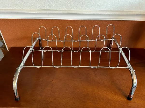 New silver metal shoe rack available. In perfect new condition. Call: 619-569-9995.