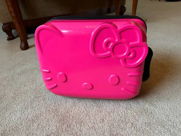 Cute hello kitty Sanrio pink color carry on suitcase, hard shell, extended handle, practically new, it was used 1 time locally. About 18 high. In perfect new condition. Call: 619-569-9995.