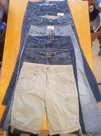 Selling altogether. There are 6 pairs in this lot. 5 pairs of Jeans and 1 pair of shorts. Levis, 9 West, Gap, Old Navy, and Khakis & Co. ALL LIKE NEW! Smoke and Pet free home! Text me at 314-630-2952