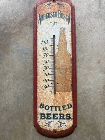 Vintage Anheuser Busch metal thermometer. Works and measures 8 x 27. Check pics for condition..........$25........ call 321-205-6492