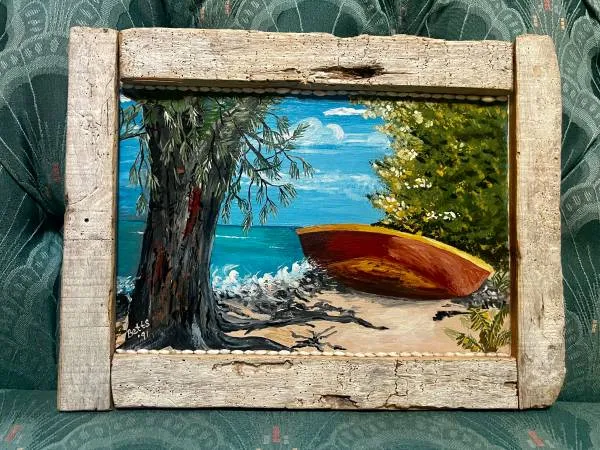 Great condition Beautiful colors Has a drif 2 od like frame lined with small seashells Signed and painted by Betts in 199114 x 11 Feel free to call or text me anytime at 133-983-2273