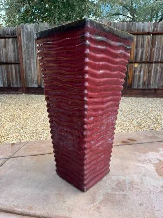 Glazed Pottery St 1 Ware Square Dimple planter Royal red glaze finish 36 Tall Very heavy and thick Outdoor/Indoor use Weather-resistant Beautiful shape Top:16 x 36 H Base: 11 x 11 W 8: 95 lbs Pick up 415-867-4889