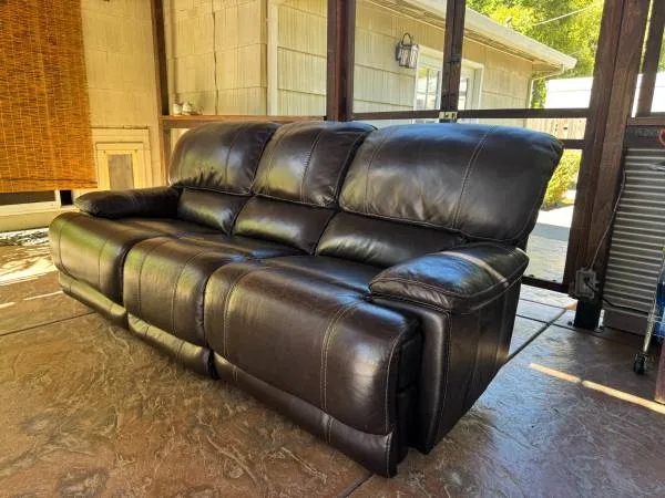 Lauretta Leather Power Reclining Sofa w/Power Headrests Like new condition Top grain leather Dark reddish brown 2 power reclining seats 2 power headrest USB ports Pillow top armrests Dimensions: 90 L x 42 W x 42 H W 8: 275 lbs. appx Pick up 415-867-4889