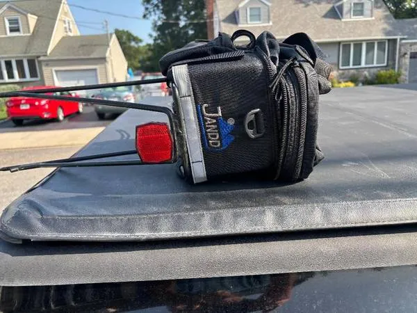 LIKE NEW JANDD BIKE RACK AND EXPANDABLE BAG I WLL SUPPLY BOLTS TO MOUNT TO YOUR BIKE LARRY 516-680-1724