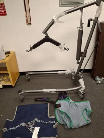 Medical Hydraulic Patient Lift with 6 Point Cradle, 5 Casters + 2 Large Slings and chains. Silver Vein steel construction. BRAND NEW! Please text Only 646-332-0581