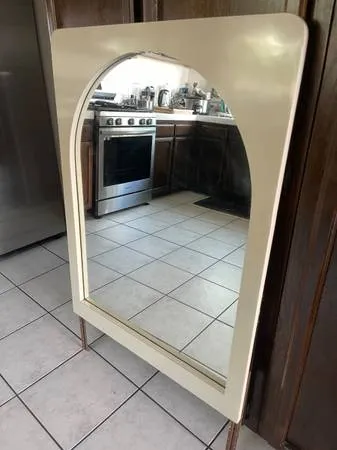 Up for sale mid century modern style Mirror Vanity or Entryway Wooden frame off white finish good condition can be hanged or fixated behind a console or chest of drawers. Lets recycle lets reuse and lets preserve our planet to the next generations to come. NOTE-1- please call or text 818-809-8470 leave a message on my voice mail and I will be very happy to return your call! NOTE -2-if this add is on, it means the item is available ! when it is sold I delete the add right away Note -3- I dont answer to scam emails or scam text Thanks for looking. Please join me again and Many Happy Purchases to you