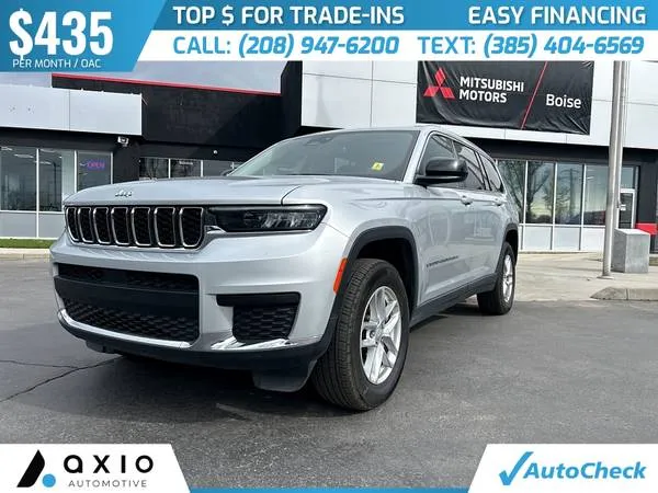2023 Jeep Grand Cherokee L Laredo 41,500 mi. - Automatic - SUV - 4 Wheel Drive - VIN# 1 C 4 RJKAG 9 P 8821105 - STK# B 1748 The automatic transmission makes driving easier in stop-and-go traffic and on hilly roads and this 4 wheel drive system delivers proven and rugged technology to make any off-road experience exciting. BOISE MITSUBISHI Call:208-947-6200 Text:385404-6569 View this Jeep Grand Cherokee L Laredo NOW! 🚙BOISE MITSUBISHI Car Shopping Made Easy! Call:208-947-6200 Text:385404-6569 🚘 Vehicle Information: STOCK: B 1748 YEAR: 2023 MAKE: Jeep MODEL: Grand Cherokee L TRIM: Laredo MILES: 41,500 EASY FINANCING AVAILABLE! ☞ We stock a huge selection of pre-owned cars, SUVs, Trucks, Vans and more! ☞ Competitive prices are offered on every pre-owned model for sale on our lot and a nearly unlimited amount of options are available to be sourced! ☞ Free AutoCheck! ☞ Wide Ne 2 rk of Lenders and Flexible Terms! 💻 Copy and Paste the below for FAST Approval: ➜ https://www.boisemitsubishi.com/financing/application.htm 👍 TRADE-INS WELCOME! LET US HELP YOU get into the car of your dreams today. Speak to 1 of our friendly sales consultants who are more than happy to help you throughout the whole process. 👍 NO PRESSURE SALES We pride ourselves on providing our customers with the information they need to make the best-educated decision for them. 👉 There are other similar years of vehicles to choose from such as 20262025202420232022202120202019201820172625243222120191817 Jeep Grand Cherokee L Laredo - Contact us today for more information. 💻 Copy and Paste the Below Link For More Inventory: https://www.boisemitsubishi.com/used-inventory/index.htm 🕗 Hours: Monday: 9:00 AM - 9:00 PM Tuesday: 9:00 AM - 9:00 PM Wednesday: 9:00 AM - 9:00 PM Thursday:9:00 AM - 9:00 PM Friday: 9:00 AM - 9:00 PM Saturday: 9:00 AM - 8:00 PM Sunday: Closed Disclaimer: The monthly payment on this vehicle is an estimate, based on the sales price of $29,900 calculated on a 6.76 APR for 72 months with a down-payment of 20, on approved credit. All advertised prices exclude government fees and taxes, any finance charges, any dealer document preparation charge, and any emission testing charge. Down Payment, Monthly payment, and interest rate are based on approved credit. Prices do not include Sales Tax and DMV registration fees. While we try to make sure that all prices posted here are accurate at all times, we cannot be responsible for typographical and other errors. Please call us for availability on all vehicles since our inventory moves fast. BOISE MITSUBISHI Call:208-947-6200 Text:385404-6569 View this Jeep Grand Cherokee L Laredo NOW! This 2023 Jeep Grand Cherokee L SUV is easy on your budget at Call For Price. Were growing to serve you better. Get in touch today 2023* Jeep* Grand Cherokee L* 2023 Jeep_Grand Cherokee L_ 2023 Jeep_ Grand Cherokee L_ *Jeep Grand Cherokee L* *Jeep Grand Cherokee L Laredo* *Jeep* *Grand Cherokee L* *Laredo* *2023 Jeep Grand Cherokee L* *2023 Jeep Grand Cherokee L Laredo* *Grand Cherokee L 2023* *Jeep Grand Cherokee L 2023* *Grand Cherokee L 2023* *Jeep Grand Cherokee L 2023* *Jeep Grand Cherokee L 2023 Laredo* *Jeep Grand Cherokee L Automatic* *Jeep Grand Cherokee L Automatic Laredo* *Automatic Jeep Grand Cherokee L* *Jeep Automatic Grand Cherokee L* *Automatic* *36 L V 624 V VVT S 0 dr* *Jeep* *Grand Cherokee L 2023* *Jeep Grand Cherokee L * * Jeep Grand Cherokee L* ** *36 L V 624 V VVT SV 0 dr* *Jeep Grand Cherokee L 2023* *36 L V 624 V VVT SL 0 dr* *Jeep* *Grand Cherokee L 2023* *36 L V 624 V VVT + 0 dr* *Jeep Grand Cherokee L 2023* *36 L V 624 V VVT S SUV* *Jeep* *Grand Cherokee L 2023* *36 L V 624 V VVT SUV* *Jeep Grand Cherokee L 2023* *36 L V 624 V VVT SUV Grand Cherokee L* *Jeep* *Grand Cherokee L 2023* *36 L V 624 V VVT SUV Grand Cherokee L Laredo Chevy Powered by WizPoster.com — 1 Craigslist Posting Tool.