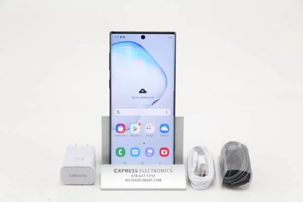 Available in store is a Samsung Galaxy Note 10 that has 256 GB of storage and is in the color Black. The device is in EXCELLENT cosmetic condition and has no major signs of wear overall. The phone has a GUARANTEED clean IMEI and is FACTORY UNLOCKED, which allows it to be used with AT&T, Verizon, and any other worldwide carrier. You will also receive the fast charging cable, in addition to the phone. The Note 10 is ready to be purchased! ***APPLY FOR OUR NEW 90-DAY SAME AS CASH FINANCING WITH EASYPAY BY SCANNING THE QR CODE IN THE LAST PHOTO*** WE GUARANTEE & OFFER: -CLEAN SN/IMEI/SERIAL NUMBER For Life -30 Day Testing Period -Free CheckMend Report CheckMend searches data from numerous legitimate US sources to provide mobile device history reports, letting you buy with confidence! *******************Call or Text Us: 678-677-1212******************** We ACCEPT: CASH, AMERICAN EXPRESS, VISA, MASTER CARD, and DISCOVER HOURS OF OPERATION Monday-Friday 11-6 pm Saturday Closed Sunday 12-6 pm EXPRESS ELECTRONICS 3145 Buford Hwy Duluth GA 30096 WE ALSO PROVIDE: *Repairs *Ne 2 rk Unlocking *Monthly Prepaid Cellular Service ***You can also find us by searching for Express Electronics in Duluth on Craigslist & Google Maps!***