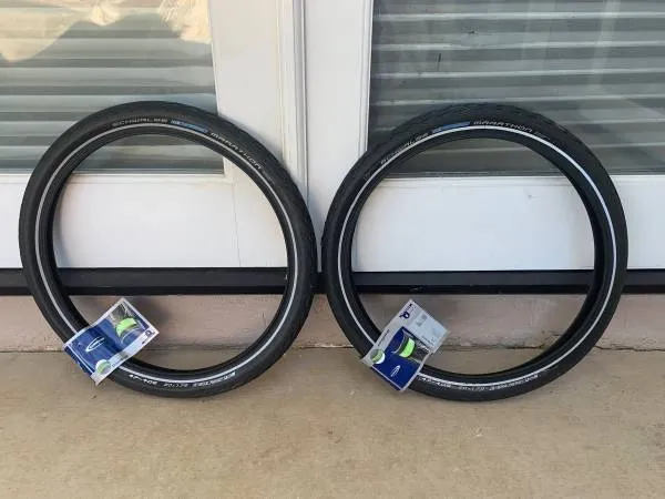 I am selling a SCHWALBE MARATHON GREEN GUARD 20 X 1.75 TIRE SET 2-NEW WITH TAGS. I am selling this set of of 2 for $85.00 Feel free to call me with questions at 408-482-0373. keywords: Folding bike tires, Folding bike tire, folding bike, 20 x 1.75