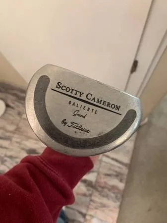 I am selling a SCOTTY CAMERON CALIENTE GRAND PUTTER 35.75. This putter is in nice condition. It has a steel shaft and and nice Winn red/black graphics padded grip. It is the Pulte Master Builder name etced on the top of the head. I am selling it for $100.00 Feel free to call me with questions at 408-482-0373. keywords: TITLEIST SCOTTY CAMERON CALIENTE GRAND PUTTER, SCOTTY CAMERON CALIENTE GRAND PUTTER BY TITLEIST, SCOTTY CAMERON PUTTER