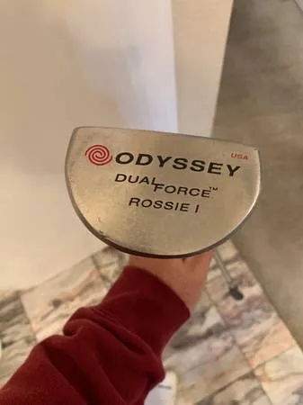 I am selling an ODYSSEY DUAL FORCE ROSSIE I PUTTER. This Odyssey malleet putter is in excellent condition. It has the Odyssey Stronomic dual force stainless steel shaft with nice original Odyssey leather grip. It measures 34 long. I am selling it for $85.00 Feel free to call me with questions at 408-482-0373. keywords: Odyssey putter