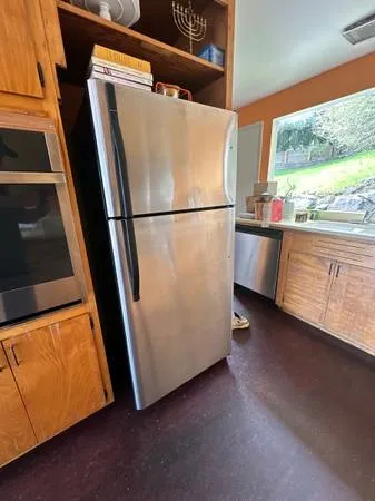 Kenmore Top mount Refrigerator 18 cu ft STAINLESS STEEL Fridge and Freezer stay cold always every week or 2 we sponge a little tiny bit of water on the bottom of the fridge it’s no big deal! We are getting a brand new bigger 130 X 30 X 66 First $150 gets it Great Deal!! Paul 206-409-6568