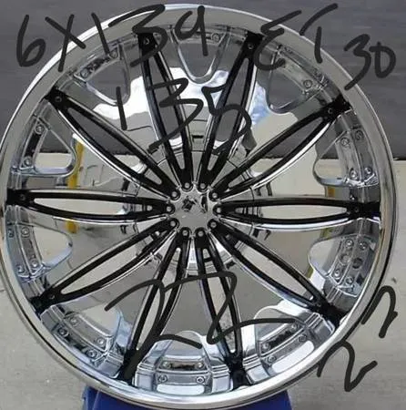 Feel free to call or text 562-550-0183 Up for sale 22 inch wheels chrome with black inserts new in the box Bolt pattern 6 x 139.7 and 6 x 135 Fit: suburban Tahoe Escalade Avalanche Sierra Armada Titan Denali Yukon F 150 Expedition Navigator Im located in San Bernardino California but Im coming to Vegas may 5 th call to save your set Any questions feel free to call or text for fitment information. Hablo Español
