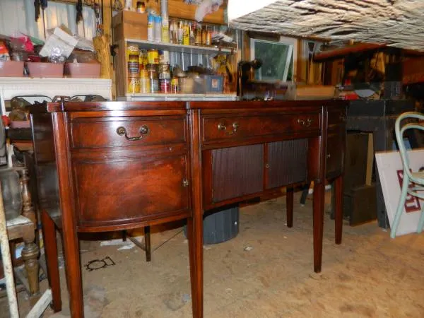 I will respond with phone ONLY and NOT email or text. Call me; or email me with your phone number and I will call you. Thanks Much . . . . . . . Ask about what other things we have in our Storeage that you may need and we may just have it. 817-238-0947. Nice English style mahogany sideboard buffet with 2 drawers and 4 doors. Approx measurements are 231/2 D x 68 W x 271/2 H. The top has been refinished to remove scratches. See pictures for more detail. I have seen 1 like this for $3500 online.