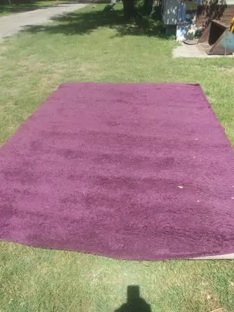 I will respond with phone ONLY and NOT email or text. Call me; or email me with your phone number and I will call you. Thanks Much . . . . . . . Ask about what other things we have in our Storeage that you may need and we may just have it. 817-238-0947. Safavieh California Shag Collection SG 151-7373 purple rug. Measures 86 x 12. I vacuumed it after the picture and it flattened out on my grass so it looks better than the picture. Sorry I dont have a room big enough to roll it out in.