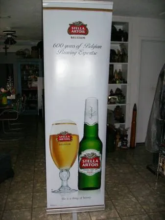 I will respond with phone ONLY and NOT email or text. Call me; or email me with your phone number and I will call you. Thanks Much. 817-238-0947. Please click on More Ads by User and see what else we have in our Storeage that you cant live without. Great man cave sign for that unusual item. Banner is vinyl and retracts as seen in the last pictures. It is approx 24 W x 7 T and the leg on the base makes it 15 deep. It comes with the folding 4 piece pole to keep it open.