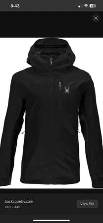 Spyder ski parka. Jagged shell - size mens XL, black with hood. new with tags , waterproof. now only $140 OBO call 503-516-0805