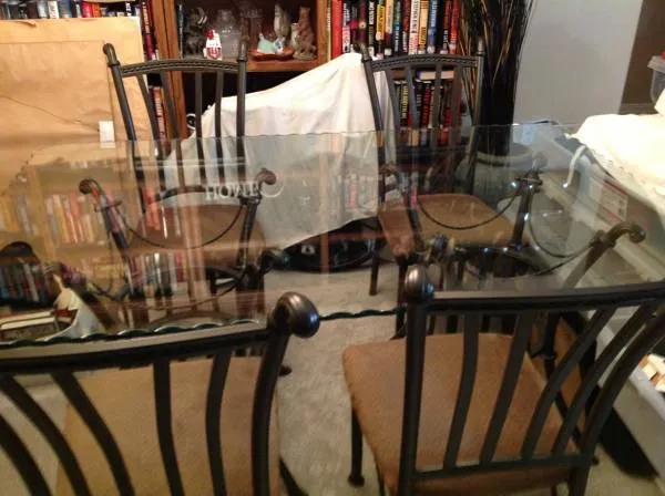 Rectangular Wrought Iron Glass Top table with Scaloped Thick Glass, 4 Chairs--List Price $ 795.00--Sell Price-$375.00, If interested Please call 702-586-1017, Leave your Name and return phone number on Answering System--Address- 4609 Chipped Rock Drive, North Las Vegas, Nevada, 89031 CONDITION NEW