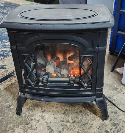 I am pleased to offer this Eletric Fireplace. We have tested it and it worked. It has a asjustable thermostat. And a powere on and off switch. Which are located on the top back corner. I am asking $45 OBO!!!!!! Taxes and Fees may apply for Pickup or Delivery. Please feel free to call or text Danny at 704-832-4110 with any questions or to schedule a time to pick up. Thank You! Items SKU:251-1025-045 Measurements: Length: 21.5 Width: 16 H 8: 24.5 Condition: great ...