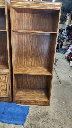 I am pleased to offer a large bookshelf with lighting. Its a dark wood color. It has 4 shelves. I am asking $100 OBO!!!!!! Taxes and Fees may apply for Pickup or Delivery. Please feel free to call or text Danny at 704-832-4110 with any questions or to schedule a time to pick up. Thank You! Items SKU: 144-0625-100 Measurements: Length: 17.5 Width: 30 H 8: 74 Condition: Good