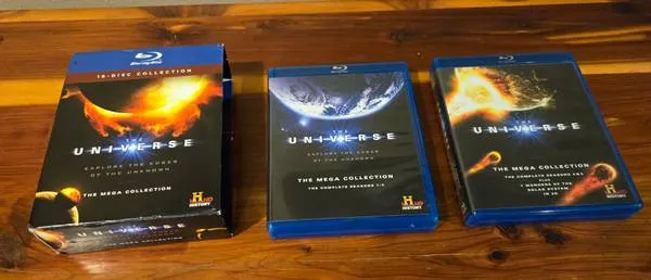 We are selling this 16 disc blu ray collection from the History Channel, The Universe. Description is below. Price is $50. Pick up in SW Sioux Falls with cash, Venmo, or PayPal. Call or text me at 605-360-3831 ------------------------------------------------- We once thought ourselves to be at the center of the world, now we know that we are just a small speck in a giant universe. Immerse yourself in an astonishing exploration of space with all 5 seasons of this epic series from History. Shot in HD with stunning footage from NASA and packed with state-of-the-art CGI graphics The Universe takes viewers on a visually arresting journey across the galaxy to bring the beauty and mysteries of the cosmos a little closer to home. Delve into the cataclysmic events that set the stage for life, and visit sites where EarthÆs birthing process is still in evidence. Relive astronomical triumphs, from the first crude lenses that were able to magnify celestial bodies to probes that blaze to the most distant planets. See the hottest events in the sky, from colliding celestial bodies to collapsing suns. And venture into the uncharted territory of outer space through the visions, studies, and predictions of scientists and explorers on this journey of cosmic discovery, amazement, and adventure. The Universe Mega Collection includes all 63 original episodes of all 5 seasons of this epic series, plus the feature-length documentary Beyond the Big Bang and more. 623