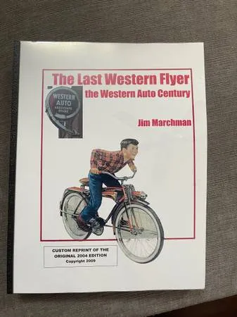 I have a copy of The Last Western Flyer book by Jim Marchman. It is close to 300 pages and covers all aspects of the Western Auto Stores including details of all bicycles sold by them. $50 text 208-914-6016