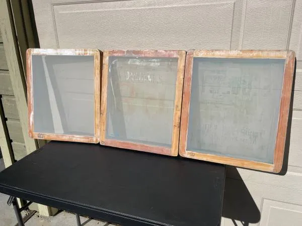 I have 3 vintage screen printing frames for sale. You can see the years of subject matter still on the screens. $35 each or all for $60 Text 208-914-6016