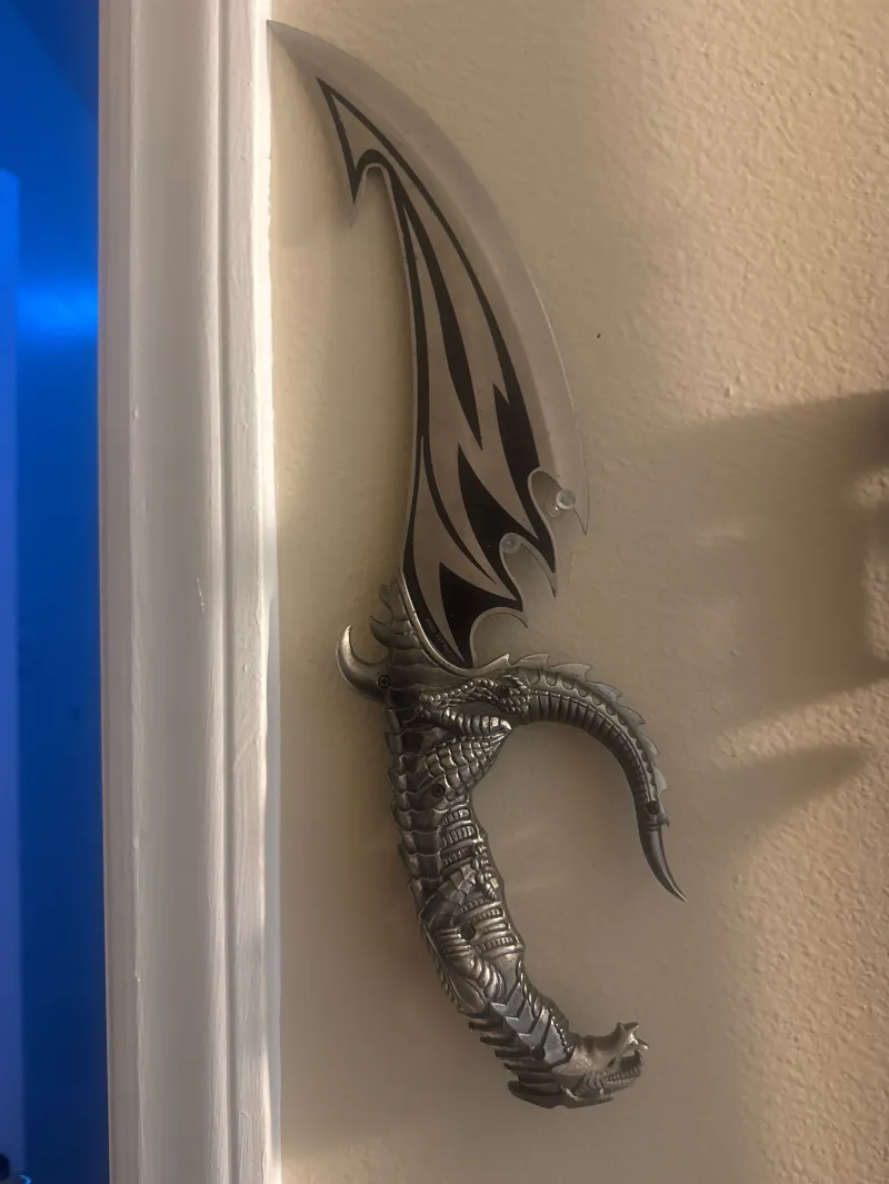 really awesome dragon dagger I’ve had it for like a year now great condition and addition to a collection very sharp so be careful if u buy this