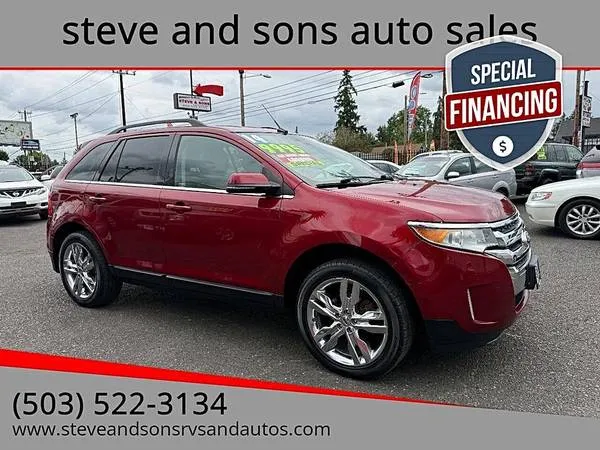 2014 *** Ford Edge Limited AWD 4 dr Crossover SUV *** Click here for more details about this carCall us now at 503-522-3134 and secure your vehicle today. Let’s get you on the road! Steve and Sons Auto Sales 6214 SE 82 Ave Portland, OR 97266503-522-3134 United States Just 1 mile away 4 Location Grand Opening Directly Across form lot 2: 6214 SE 82 nd Ave Portland, OR 97266 phone: 503-522-3134 Discover the Best in the Business! With over 150 vehicles and a reputation built since 1994, Steve and Sons Auto Sales is your top choice for quality and reliability. Visit us today at our Happy Valley or Portland locations and drive away with excellence! 📋 Free CARFAX Reports Available! Explore our inventory with confidence. Click here to check out the free CARFAX reports for all vehicles on our website. Click here for more details about this car 4 Location Grand Opening Directly Across form lot 2 Year : 2014 Make : Ford Model : Edge Mileage : 130908 miles Transmission : automatic Exterior Color : custom Interior Color : Black Series : SUV Drivetrain : 4 wd Condition : good VIN : 2 FMDK 4 KCXEBB 31299 Stock ID : 2 FMDK 4 KCXEBB 31299 Engine : 6 cylinders Drive it home today. CallOr Textus now !! Callor text 503-522-3134 and secure your vehicle today. Let’s get you on the road! Steve and Sons Auto Sales 6214 SE 82 Ave Portland, OR 97266503-522-3134 United States Just 1 mile away 4 Location Grand Opening Directly Across form lot 2 : 6214 SE 82 nd Ave Portland, OR 97266 phone: 503-522-3134 Discover the Best in the Business! With over 150 vehicles and a reputation built since 1994, Steve and Sons Auto Sales is your top choice for quality and reliability. Visit us today at our Happy Valley or Portland locations and drive away with excellence! 📋 Free CARFAX Reports Available! Explore our inventory with confidence. Click here to check out the free CARFAX reports for all vehicles on our website. Click here for more details about this car 503-522-3134 and secure your vehicle today. Let’s get you on the road! Steve and Sons Auto Sales 4 Location Grand Opening Directly Across form lot 26214 SE 82 Ave Portland, OR 97266503-522-3134 United States 6214 SE 82 nd Ave Portland, OR 97266 phone: 503-522-3134 Discover the Best in the Business! With over 150 vehicles and a reputation built since 1994, Steve and Sons Auto Sales is your top choice for quality and reliability. Visit us today at our Happy Valley or Portland locations and drive away with excellence! 📋 Free CARFAX Reports Available! Explore our inventory with confidence. Click here to check out the free CARFAX reports for all vehicles on our website. Click here for more details about this car Click here for more details about this car