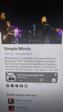 2 extra tickets for the Simple Minds Concert on May 22 nd at the Forum. Seats are amazing! Section 112 w Extra Room and Nobody can block your view. Pics are from our last few shows in the same exact seats. $175 each! We will meet at the Forum on Night of the Show. Call or Text. 310-508-0099. Thanks