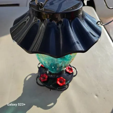 32 FL OZ TEAL COLOR HAND BLOWN GLASS RESERVOIR HUMMINGBIRD FEEDER FOR GARDENS DECOR NEW . $ 75 OBO . 407-790-5657