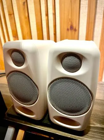 These are amazing Micro Monitor speakers, in mint condition. Amazingly full-range mini monitor speakers. Terrific for studio monitors, computer, or bookshelf applications. Self powered and onboard EQ settings. A bargain at $250. $350 new. Asheville 828-365-8052